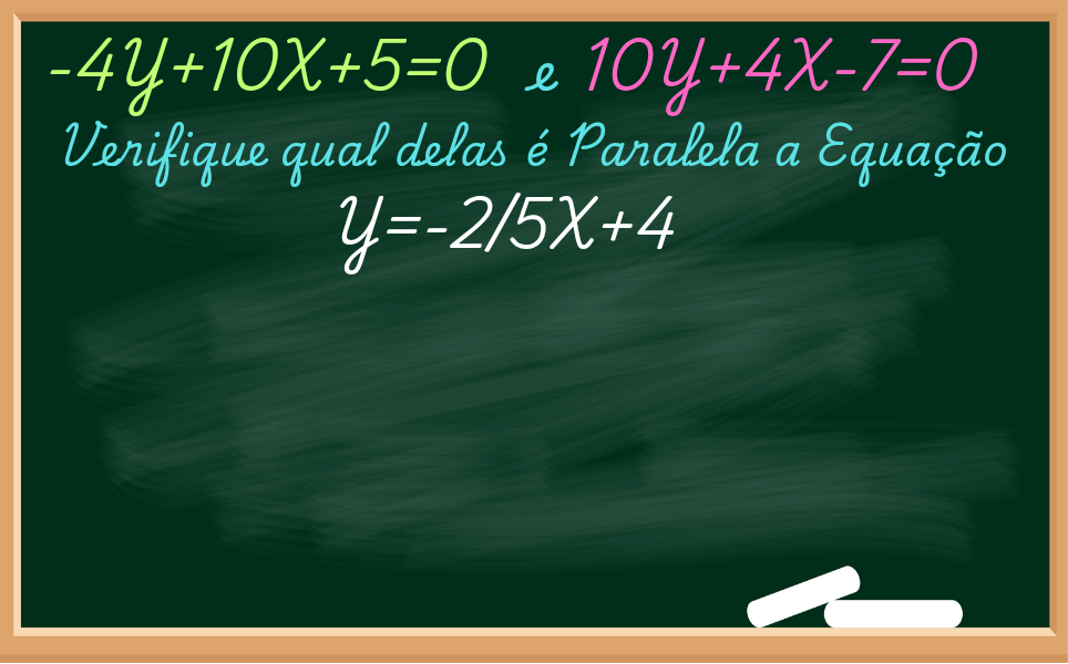 Olhando o quadro a seguir, verás duas equações da reta, em tese parecidas, e o exercício pede para verificar quais delas é paralela a uma terceira equação.