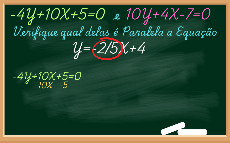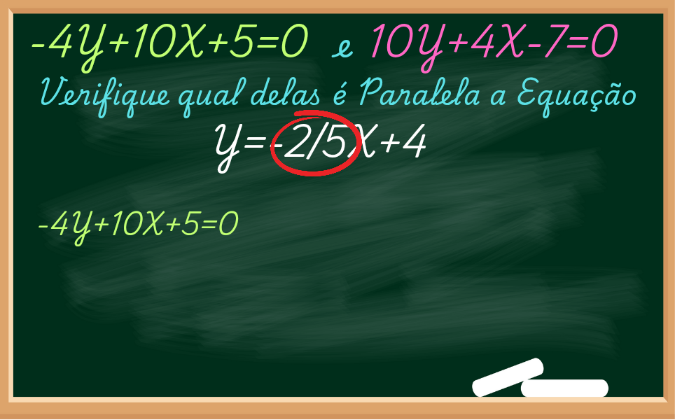 Se tu observares, as duas primeiras equações, são equações do tipo Geral da Reta. E para saber quais delas são paralelas a equação y=-2/5x+4, é importante saber algo sobre esta equação.