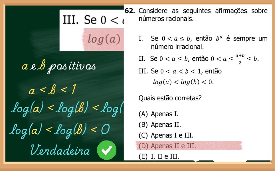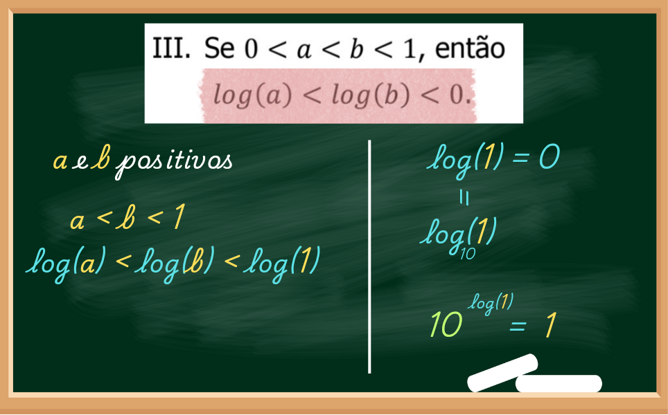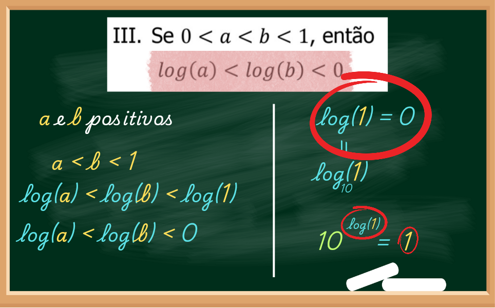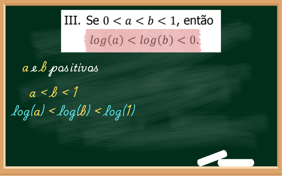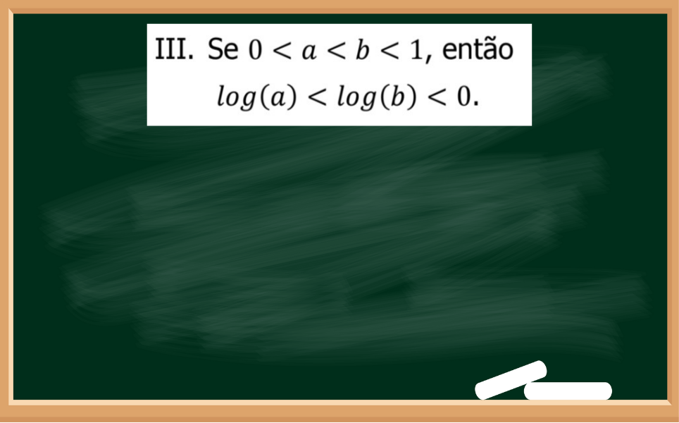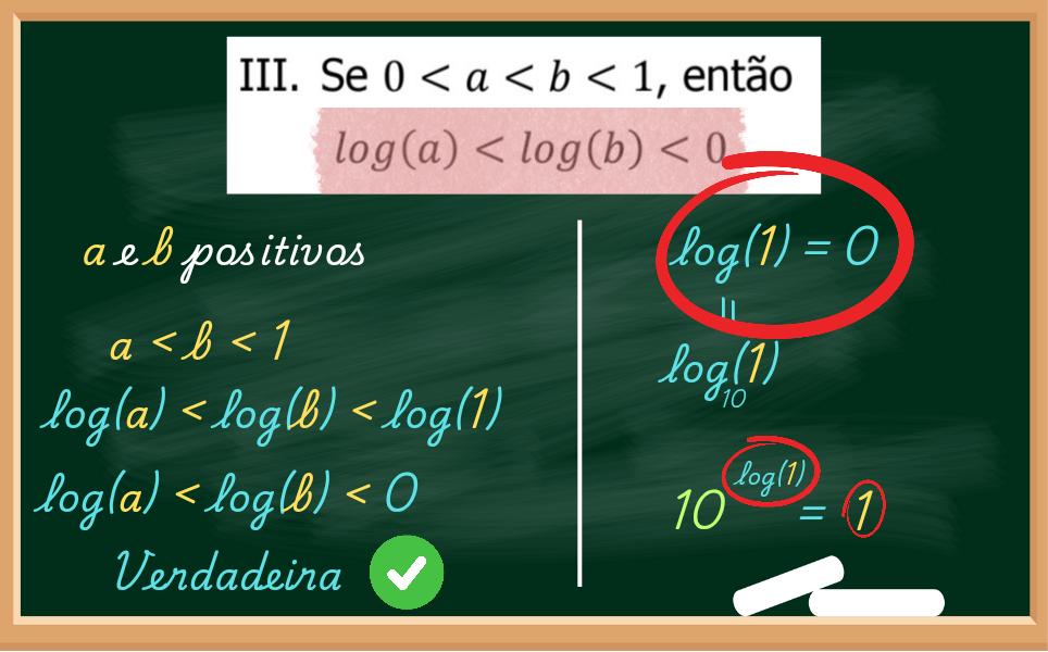Novamente a questão nos diz que a e b são positivos mas menores que 1. Mas, se calcular log(a) e log(b), o resultado deles se tornará negativo. Será que procede?