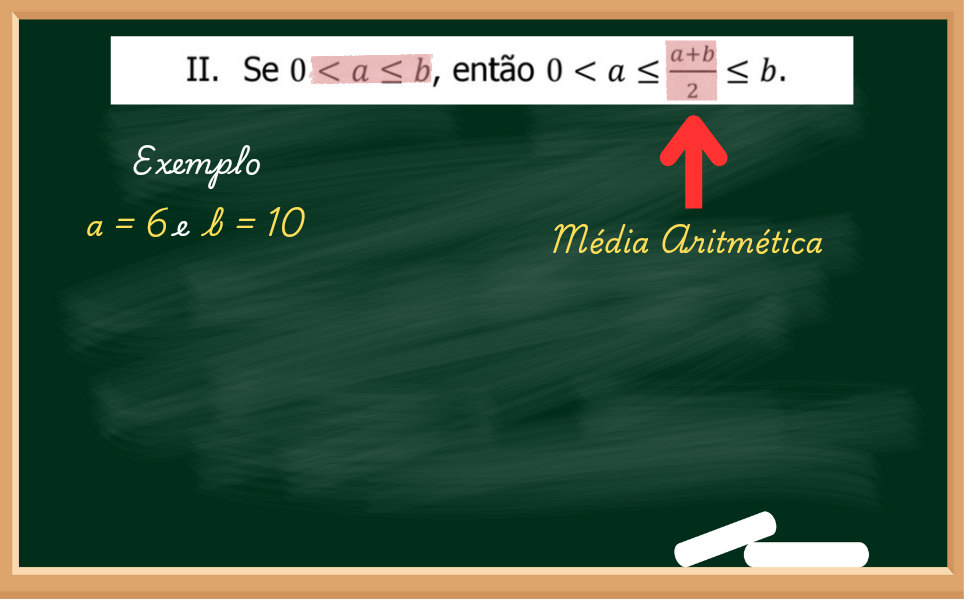 Se calcular a média aritmética entre 6 e 10, teremos 8, que ficará entre 6 e 10, e essa propriedade da média artimética serve para todos os números reais.