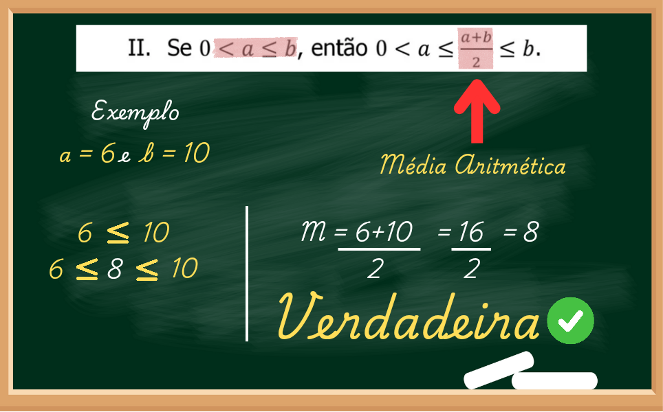 Novamente a questão traz que a e b são positivos e racionais. Mas o que a questão nos diz: Se a≤b, então a soma de a e b, onde o resultado se divide por 2, então o resultado estará entre a e b.