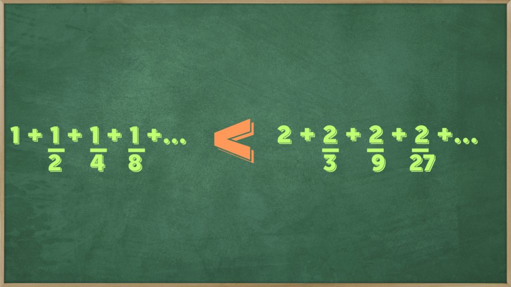 Claro que adaptei essa questão focando apenas na soma infinita dos termos de uma PG, pegando o item I e mirando as somas dos dois membros da desigualdade.
