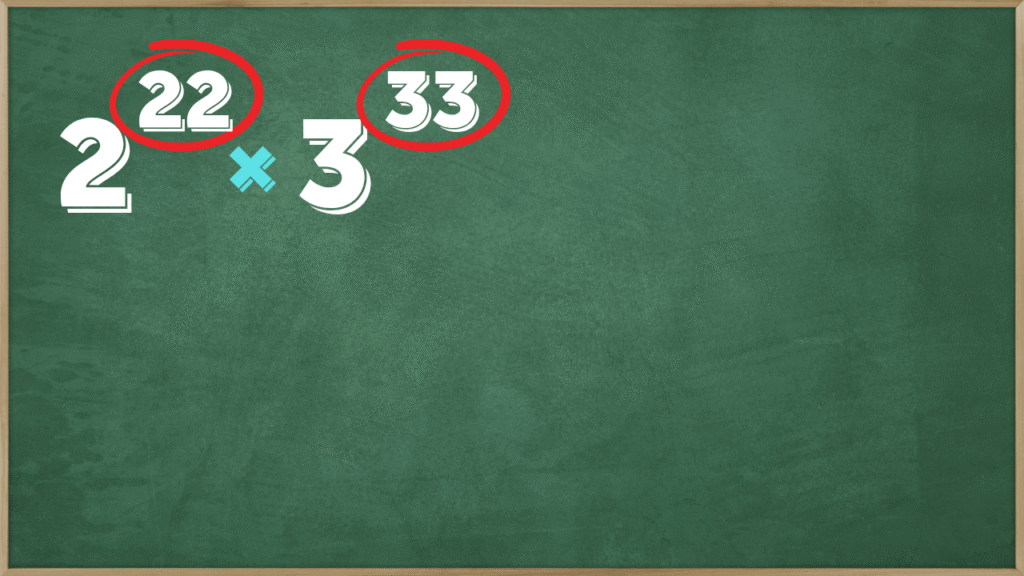Observando os expoentes, eles são múltiplos de 11, logo podemos “transformar” os expoentes 22 e 33 em produtos de 11, ficando assim: